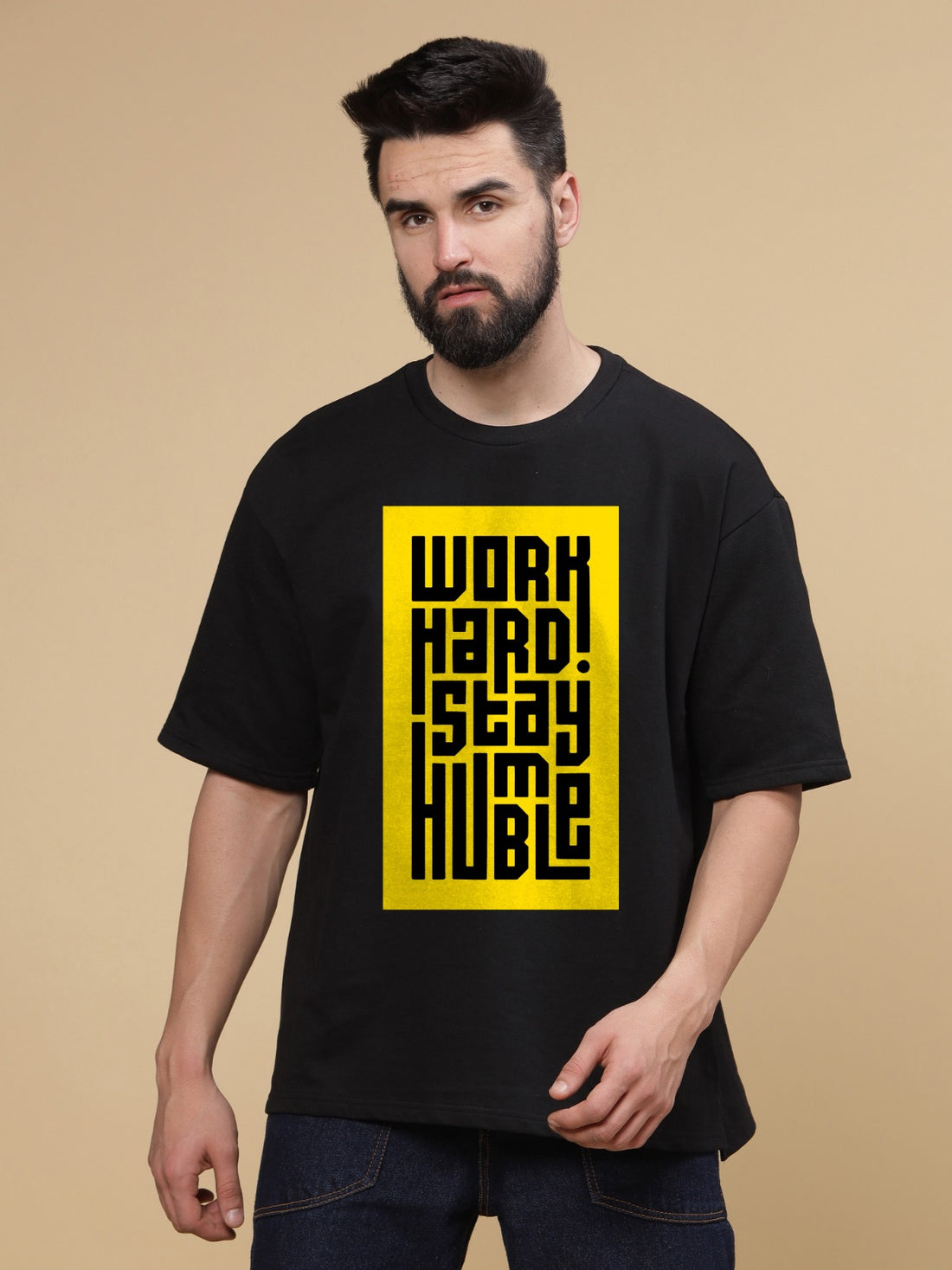Work Hard Round Neck Oversized T-Shirt