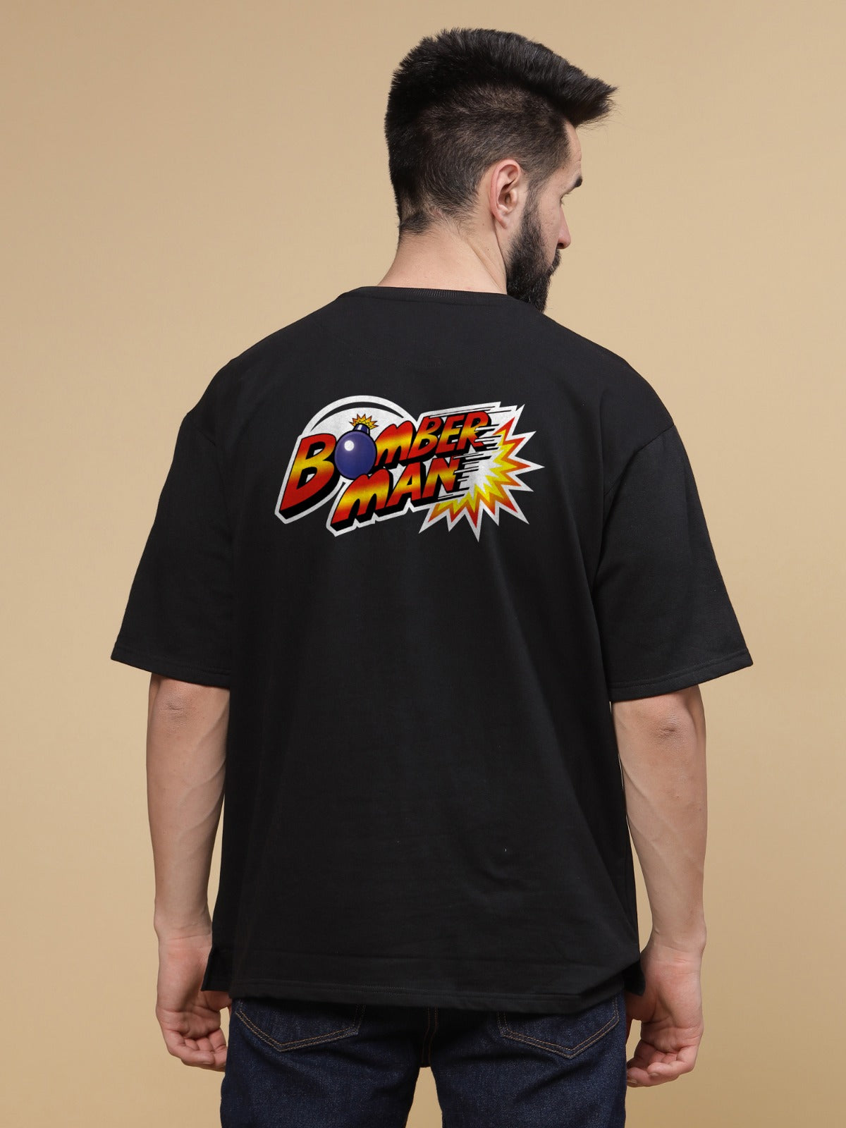 Make a statement with our Graphics Oversized Graphic T-Shirt, designed for those who love bold, expressive fashion. Crafted from premium 240 GSM cotton, this tee offers a soft, durable feel with a relaxed fit for all-day comfort. Featuring a striking Bomber Man print, it adds a unique edge to your wardrobe. The oversized silhouette, classic round neck, and dropped shoulders create the perfect blend of streetwear and comfort. Whether you're showcasing your love for Graphic Prints or just upgrading your everyday style, this t-shirt is a must-have for those who like to stand out.