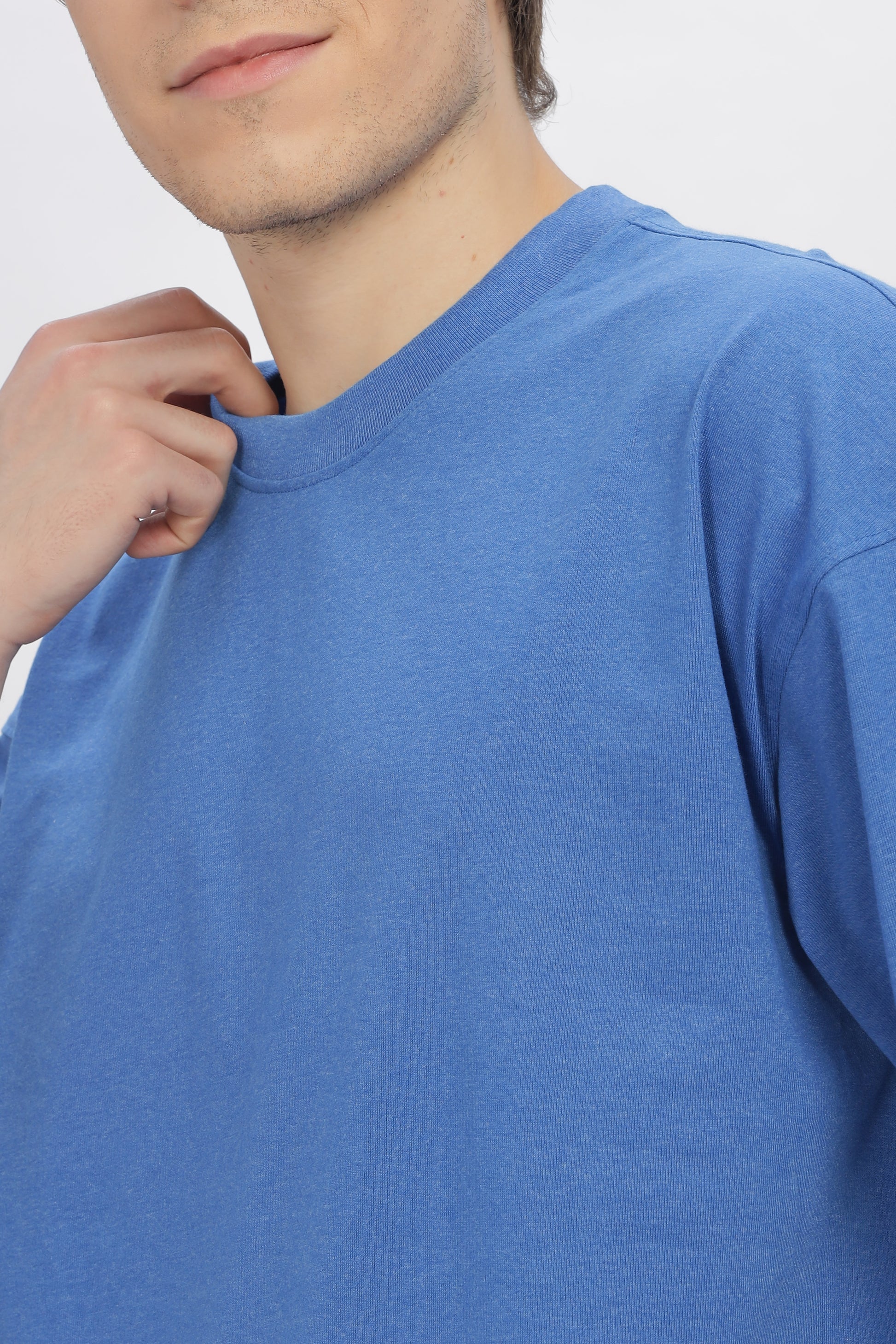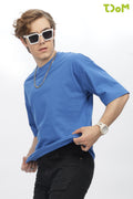 Blue Round Neck Premium French Terry Oversized T-Shirt
